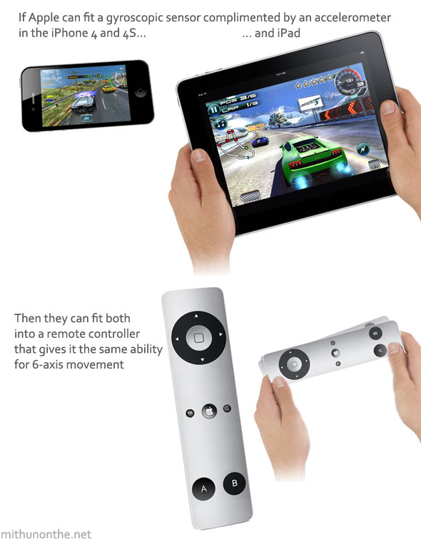 The motion detecting camera can also act as a secondary remote for non-gaming purposes. Apple’s TV is obviously going to access iTunes and your entire library of downloaded/streamed content. Plus, there’s iCloud. It’ll be nice to flip through interface menus using just your hand. No need to stretch your hand and reach out for the remote. In the future, people are going to be even lazier. Everyone knows it.